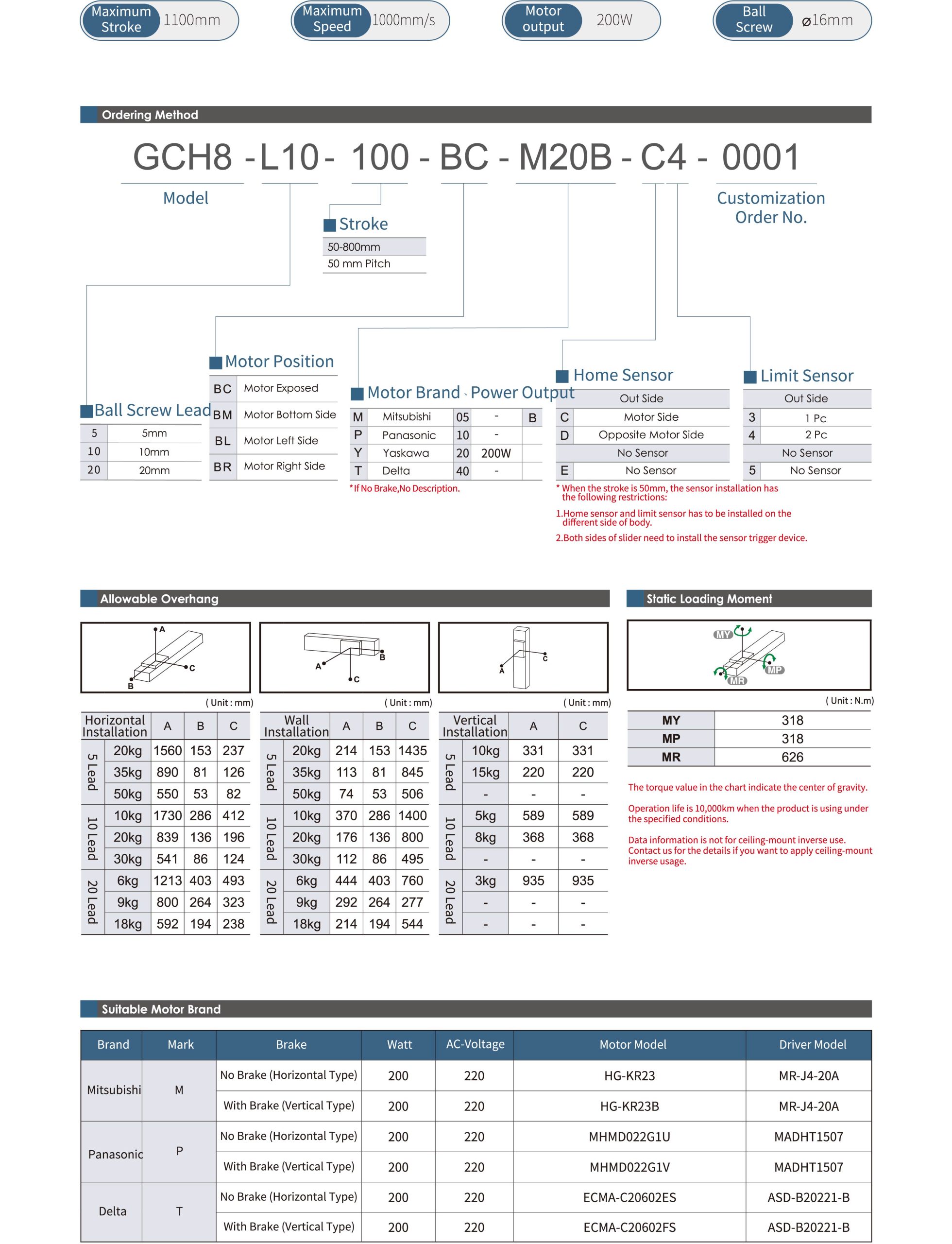 - Hành trình tiêu chuẩn: 50-1250 / 50 mm
